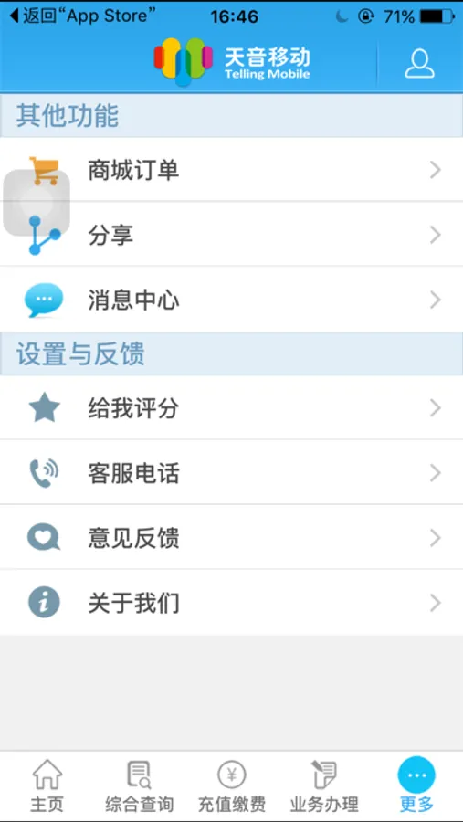 天音移动客户端是天音通信推出的一款自助服务软件,本着“连接你我,从心开始”的服务理念,面向天音移动170客户,任您随时随地查询、办理170业务。