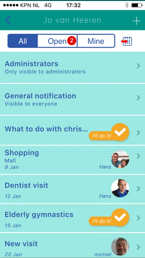 With my help you can organize matters quickly and easily. I connect people in a group. I'll make sure that everyone in the group knows exactly what to do, and who’s going to do that. I'm Nettie, #wellorganized.