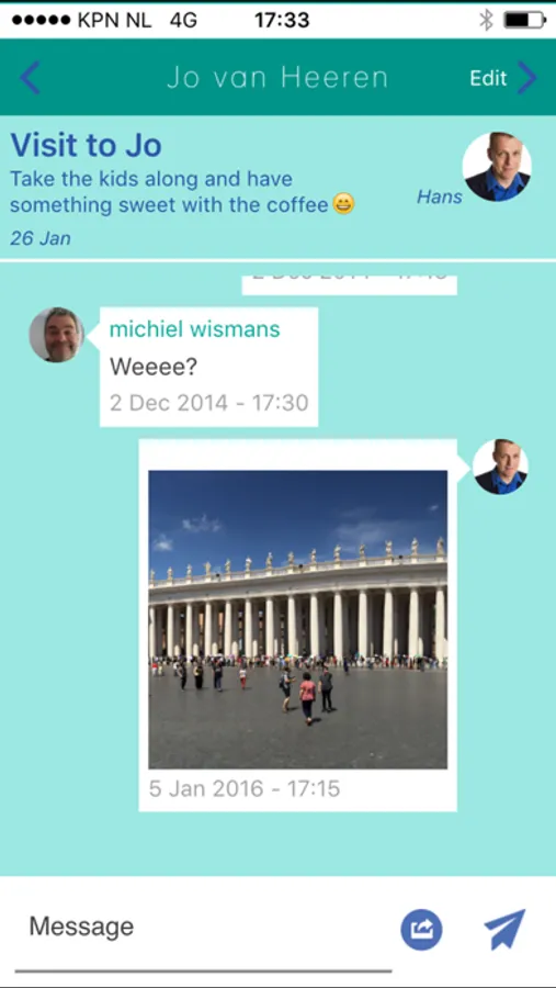 Invite your contacts easily to start a group. In this group you can plan your activities quickly and conveniently.