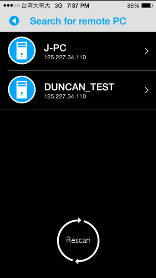 5. If connecting by Wi-Fi, once a connection is established, you can then select the target PC.