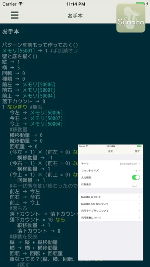 Sunaba は教育用に設計されたプログラミング言語 Sunaba のプログラム作成から実行までをサポートするアプリケーションです。