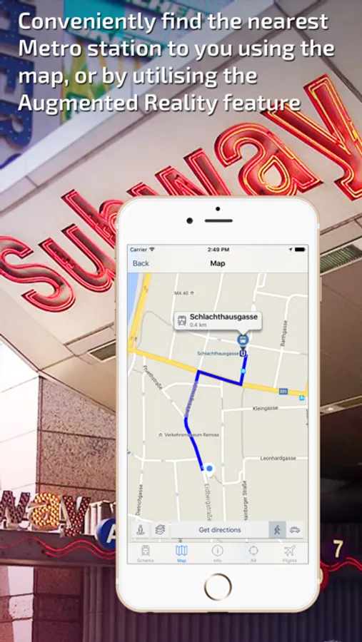 - Find the nearest U-Bahn station to you using the Augmented Reality function