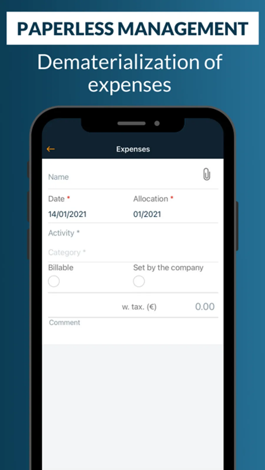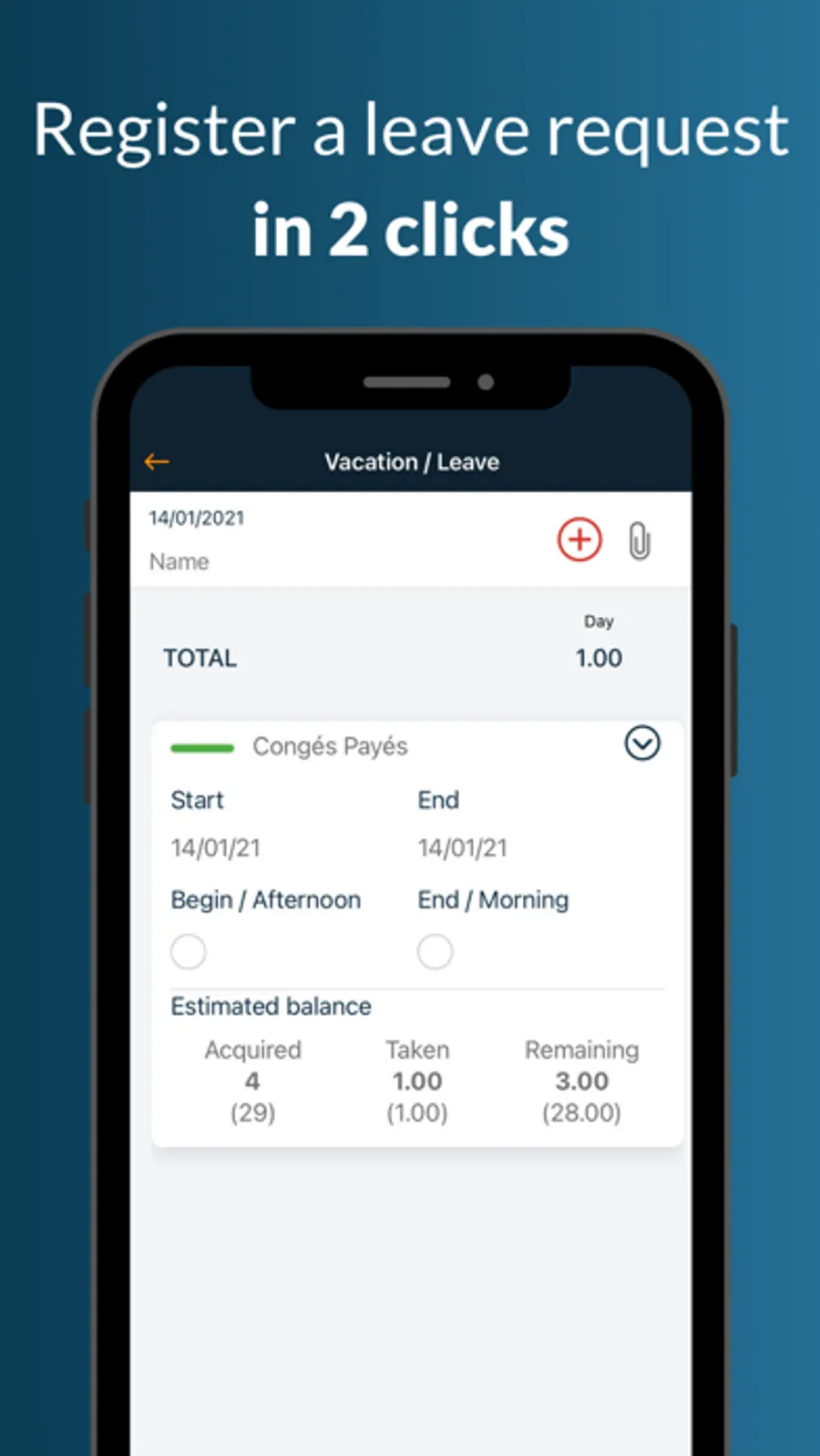 → All activity functions are included: time management, training follow-up, leave/absence management and expense report management.