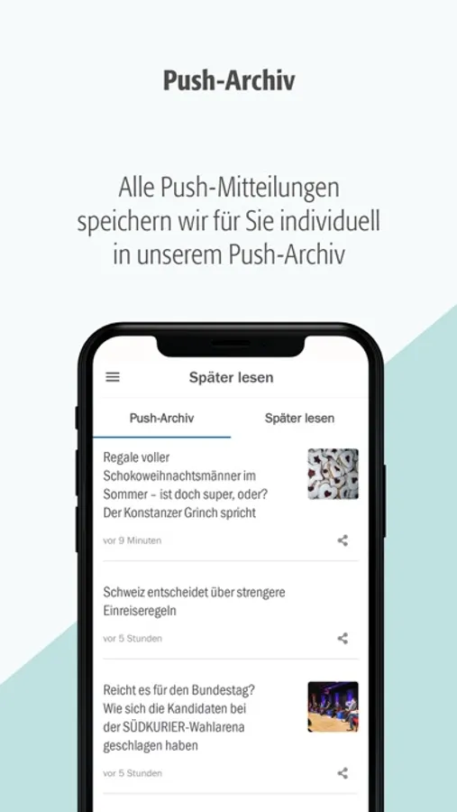 • Eilmeldungspush zu überregionalen Großereignissen sowie Leseempfehlungen