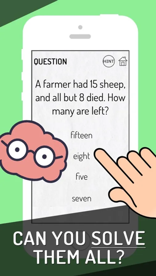 Genius Brain Test is an addictive free tricky puzzle game with a series of tricky brain teasers and questions. Different riddles testing will challenge your mind. This new puzzle game may break common sense and bring your new brain-pushing experience! You can enjoy yourself with your friends with this addictive and funny free IQ game. Get ready to take the quiz!