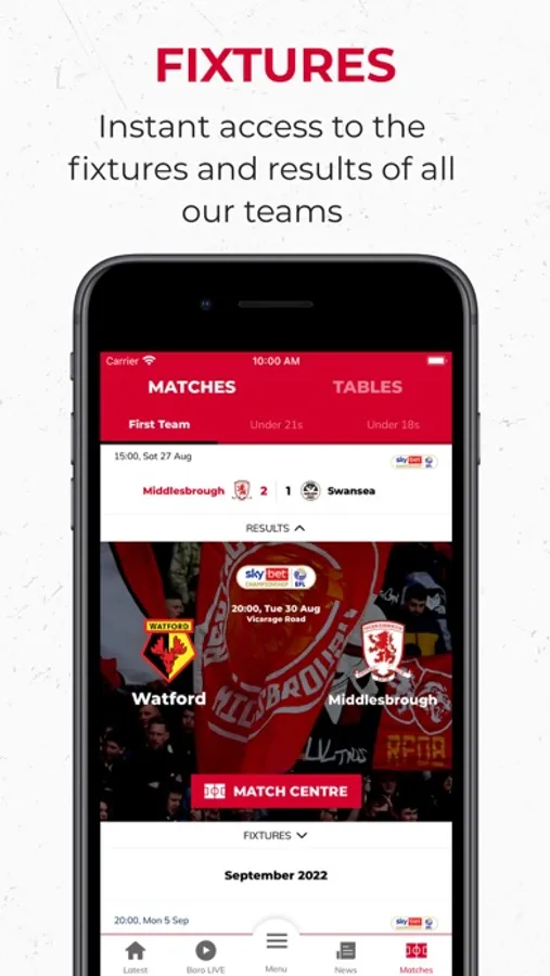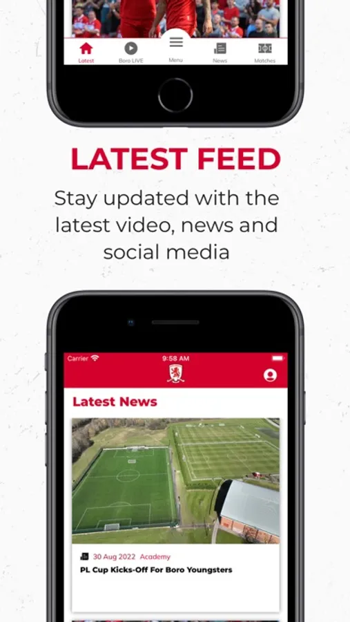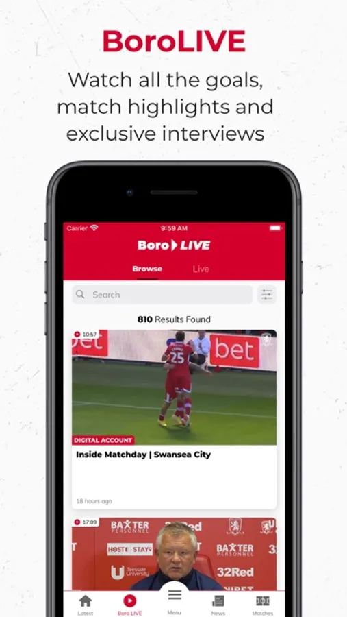 - Boro LIVE: Exclusive video content – highlights, interviews, features and more, including live match audio and video.