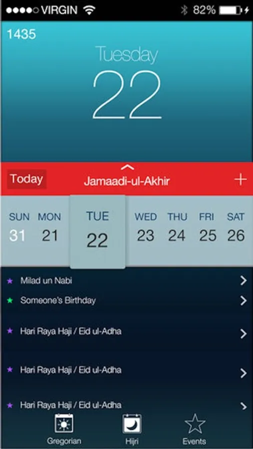The Bohra calendar allows users to add personal events such as islamic birthdays, anniversaries, weddings to a Hijri calendar which will automatically reflect in Gregorian calendar.