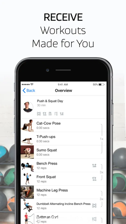 Our award-winning app workout experience coaches you through each exercise, rep, and rest with HD motion GIF images, voice commands, and motivational cues spoken by real personal trainers. Works well with or without headphones, in the gym or at home. The audio is comprehensive enough to guide your entire workout with audio-only. Also integrates seamlessly with any music player of your choice.