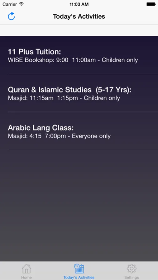 The official WISE (Wycombe Islamic Society, High Wycombe United Kingdom http://www.wise-web.org) mobile application featuring today's prayer times and today's activities. The app supports widgets for quick access to today's prayer and jamaa time. You can also enable reminders to be reminded about each prayer time according to the wise timetable shown on the website for the day.