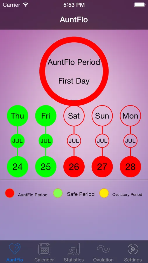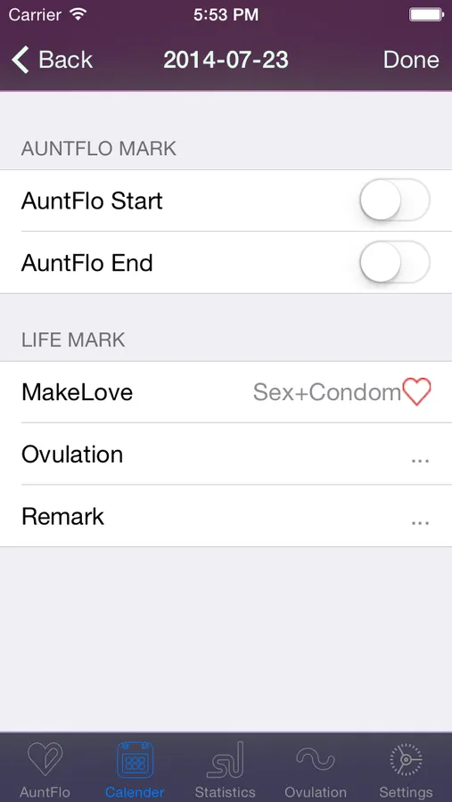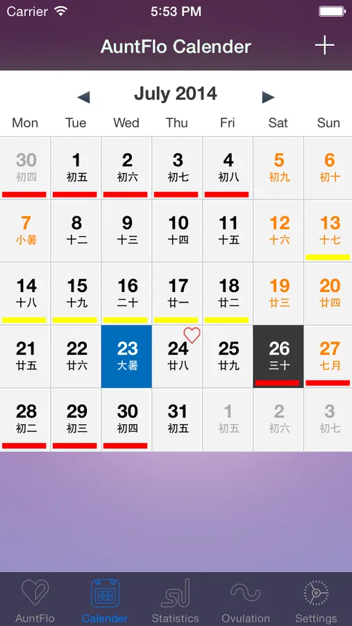 2, dynamic marking period starts and ends, marking the other information, such as sex, ovulation etc.