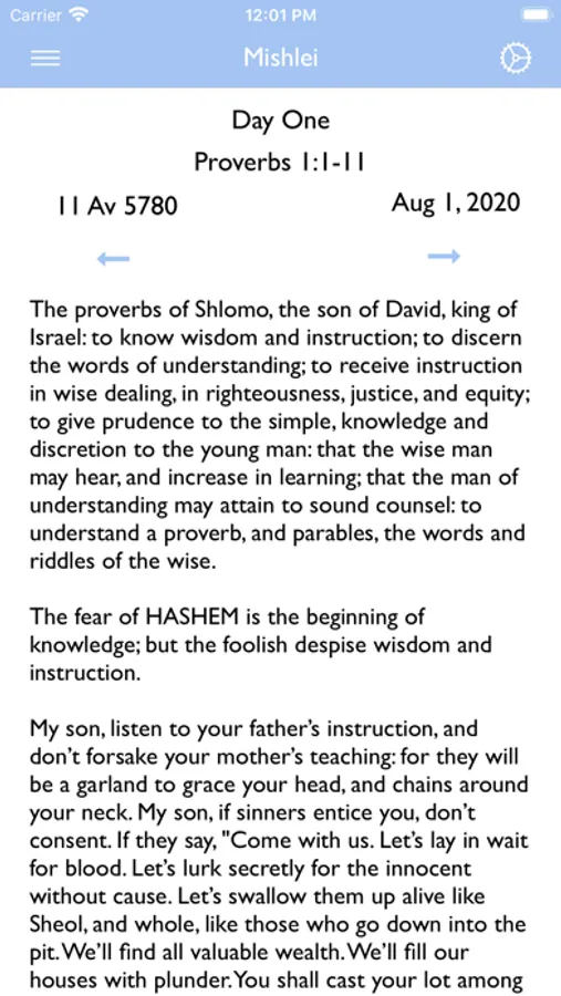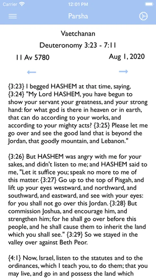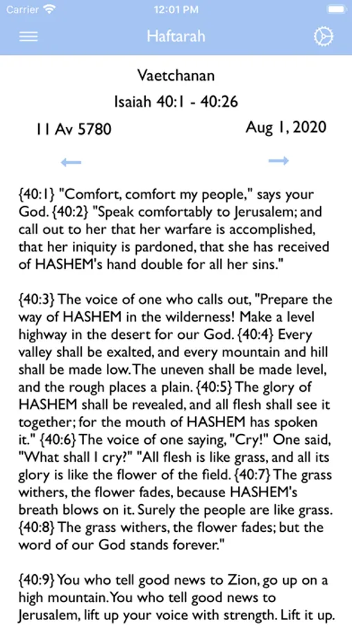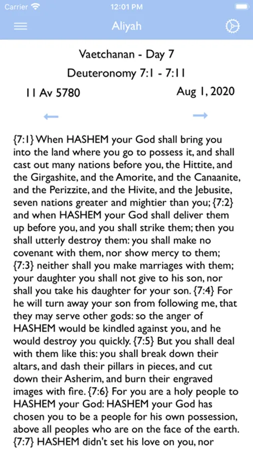 The goal of the Daily Aliyah app is to make keeping up with the weekly reading of the Torah easier. The app automatically shows the current reading for the day, and gives you access to the entire parshah and haftarah for that week. Simple and straightforward, just like Torah study should be.