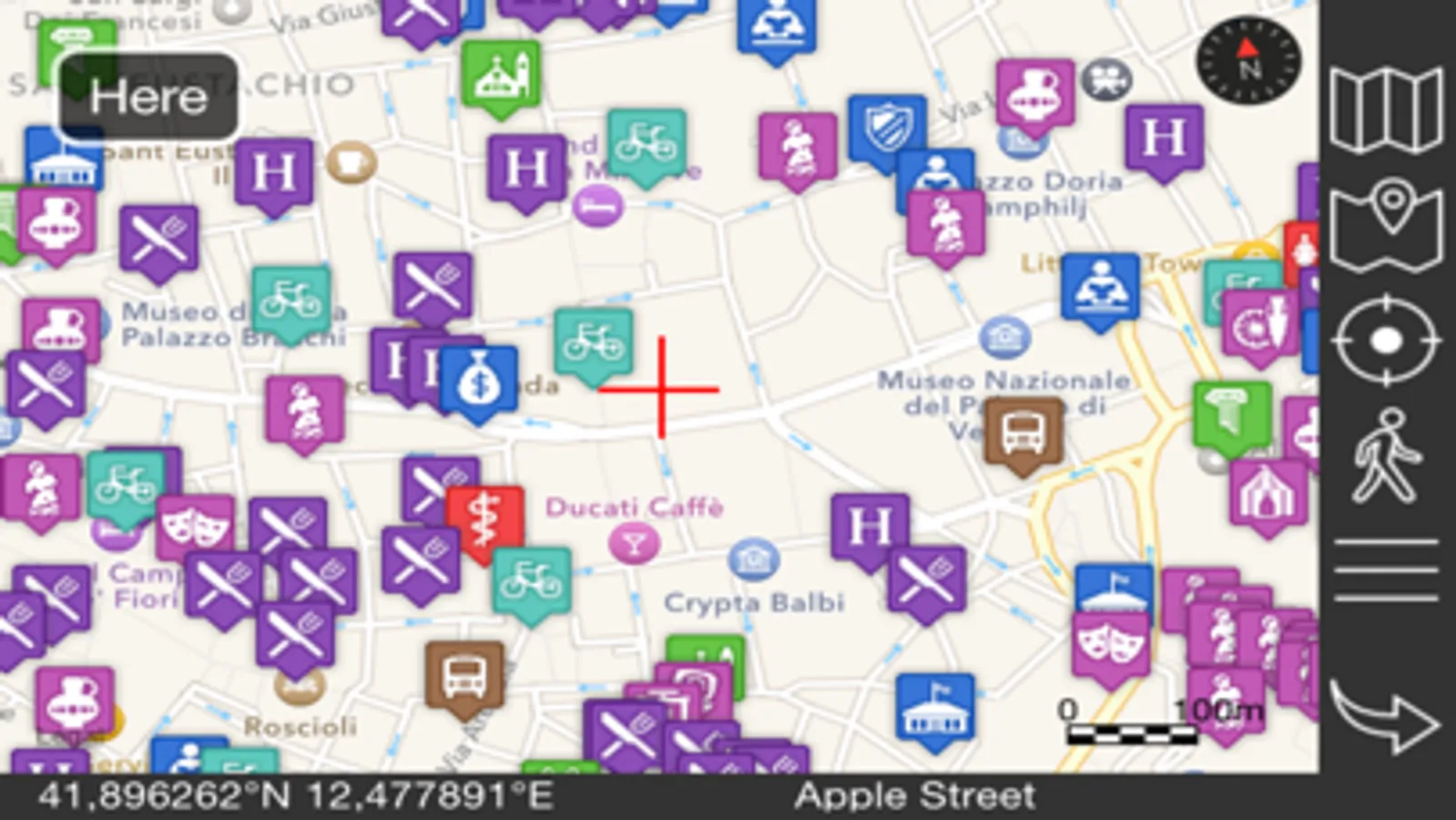 - Get directions to reach a POI or a point on the map (on foot or by car)