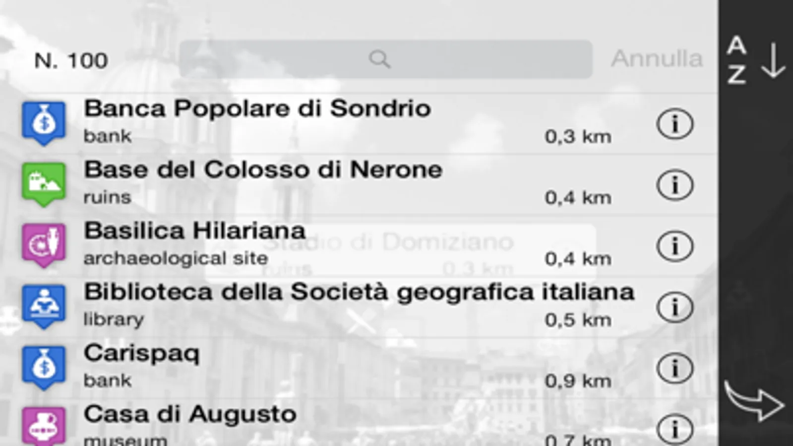 - Get a sortable list of POI with search feature