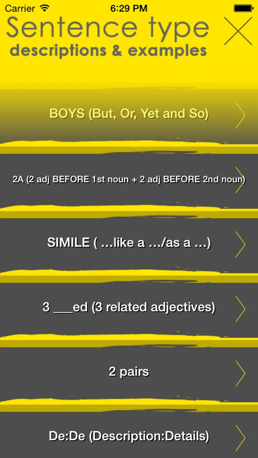 A grammar glossary for students has also been included. This relates to the sentence types and will help pupils to understand the technical terms for the grammar rules they see and use. They can also save notes within this section of the app.