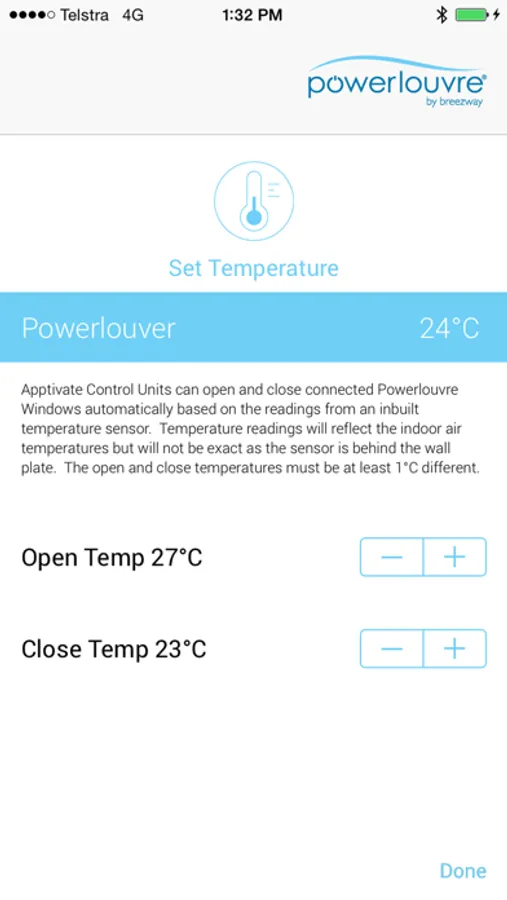 Note: The Powerlouvre App enables wireless interfacing with the Apptivate Control Unit which will be hardwired to Powerlouvre Windows. The Powerlouvre App cannot control Powerlouvre Windows without the Apptivate Control Unit.