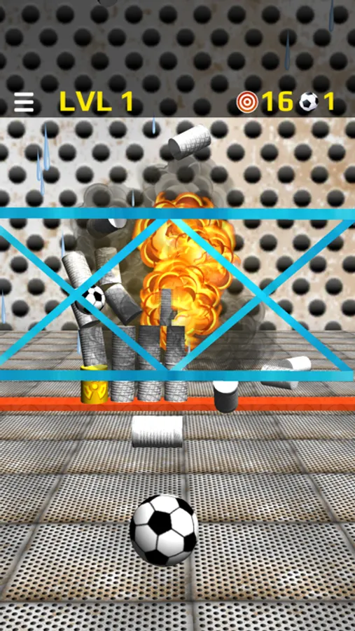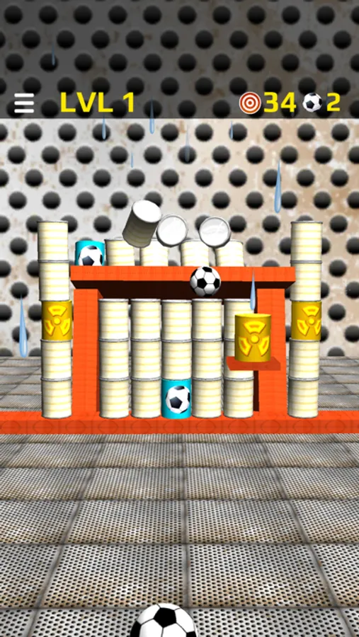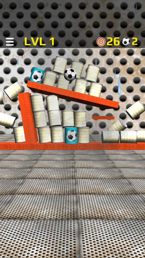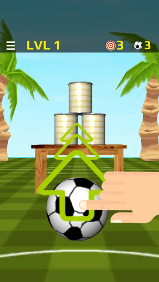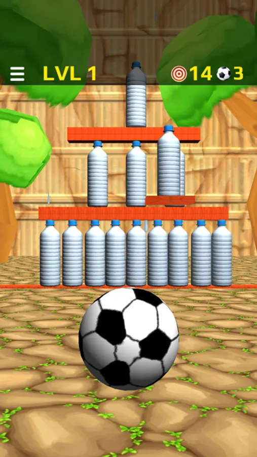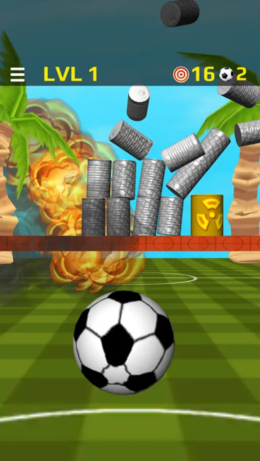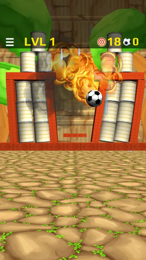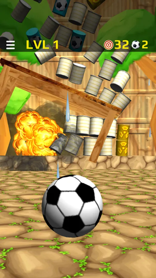 The game control is easy: just swipe the to aim and throw the soccer ball/football. The game can be played with one finger (this is a one touch type of game). Aim carefully to knockdown as much targets as possible. Or better yet, try to tumble the stacks by tumbling the stacks strategically. Or aim at the "explosive" cans (if available) for more mayhem. Try to knockdown as much as possible with the limited number of moves available.