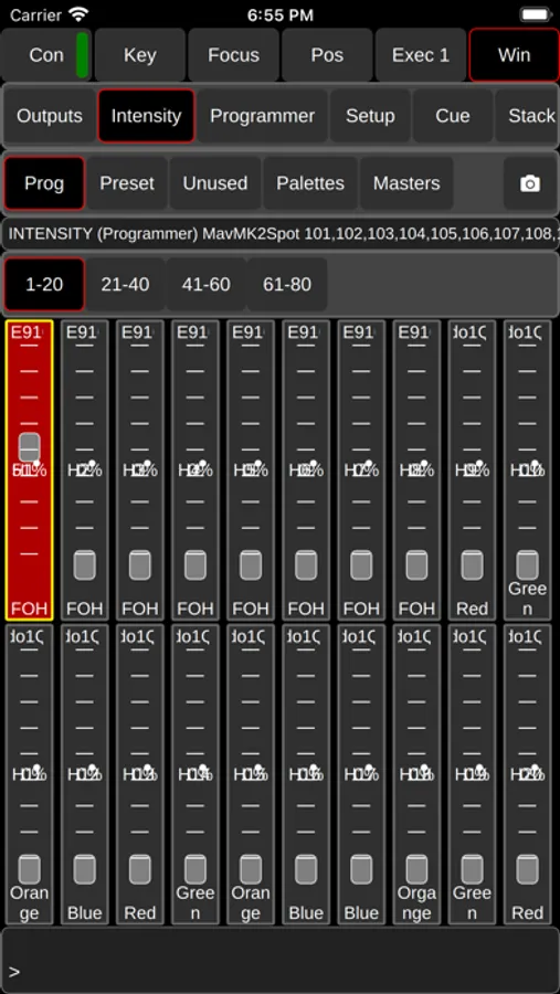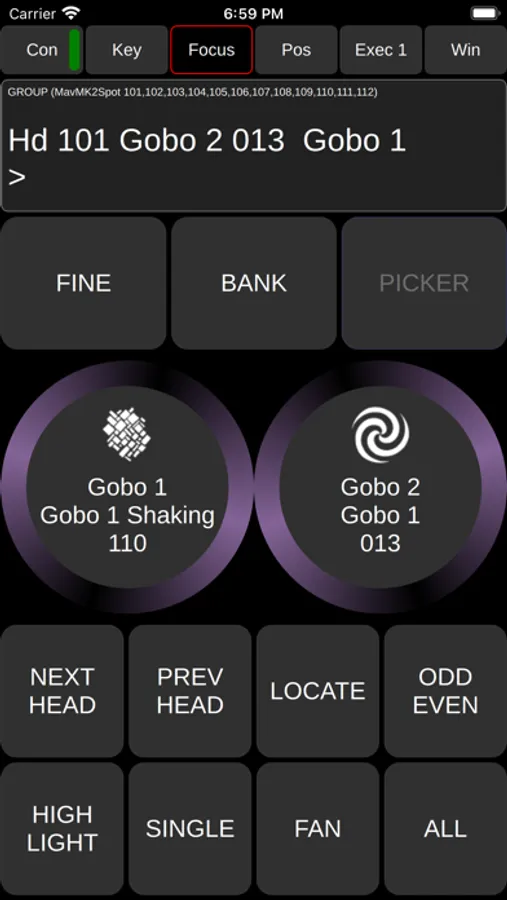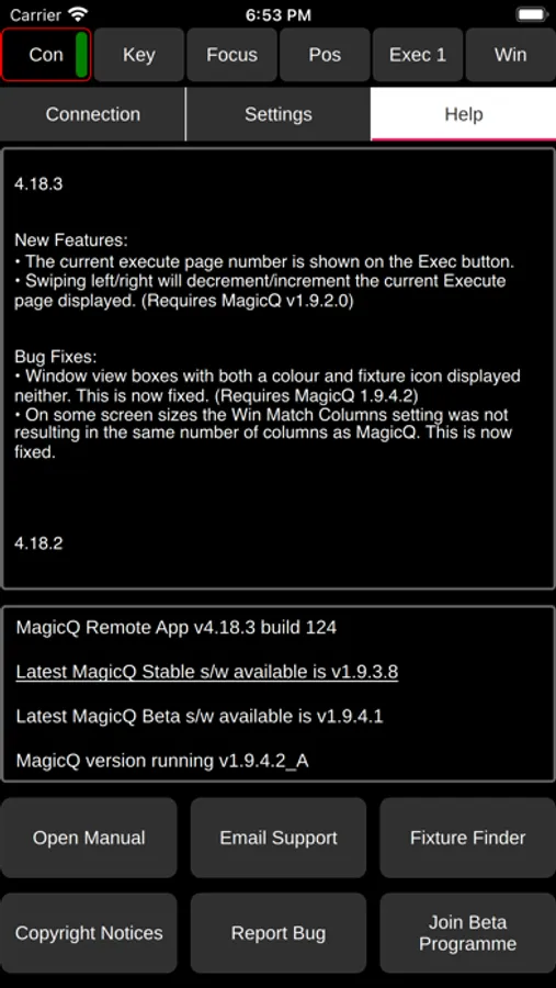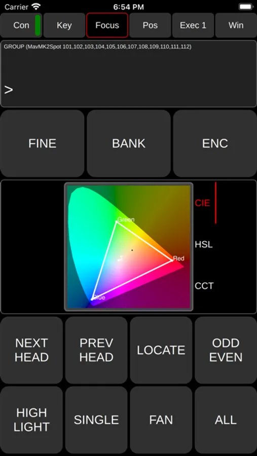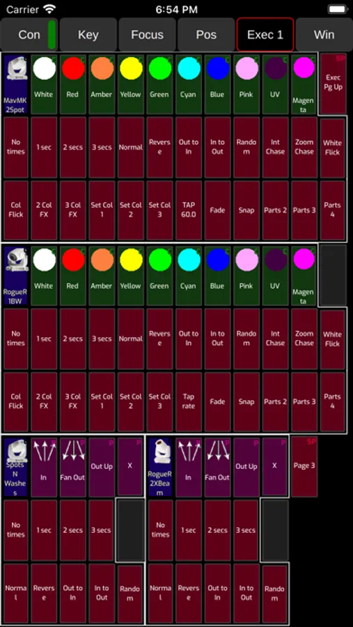 MagicQ Remote supports focusing with pan and tilt controls, colour adjustment using the rainbow colour picker and rig testing through the unique MagicQ Execute Window. Palettes, Groups and Cues can be edited and updated.
