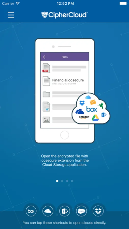 CipherCloud’s Cloud Security Broker provides persistent “down to end-point” file protection for all major cloud applications including Salesforce, Box, OneDrive, SharePoint Online, DropBox, Google Drive, Amazon S3 and more. Using the CipherCloud mobile app users can securely collaborate on content that must be encrypted to ensure security, privacy and compliance. Users can share, view and edit encrypted content with other authorized users. With CipherCloud’s selective encryption organizations can protect files based on DLP scanning for sensitive content or rules that enforce encryption at the user, group, folder or sharing level. When a device is lost or authorized access is no longer required user access to encrypted content can be revoked in real-time. In addition, enterprises have full control over encryption key management including cloud, on-premises and hybrid deployment modes.