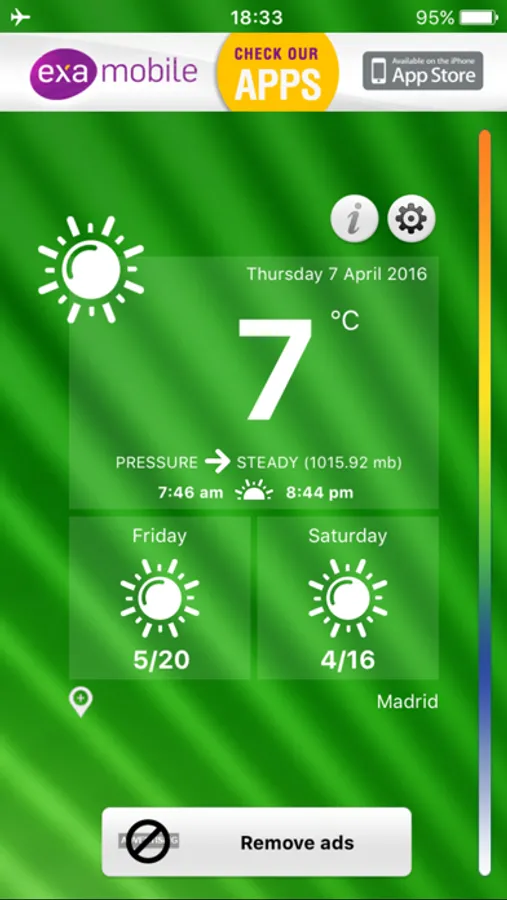 - You can check the weather: rain, cloudy, sun, temperature max / min, to the next days