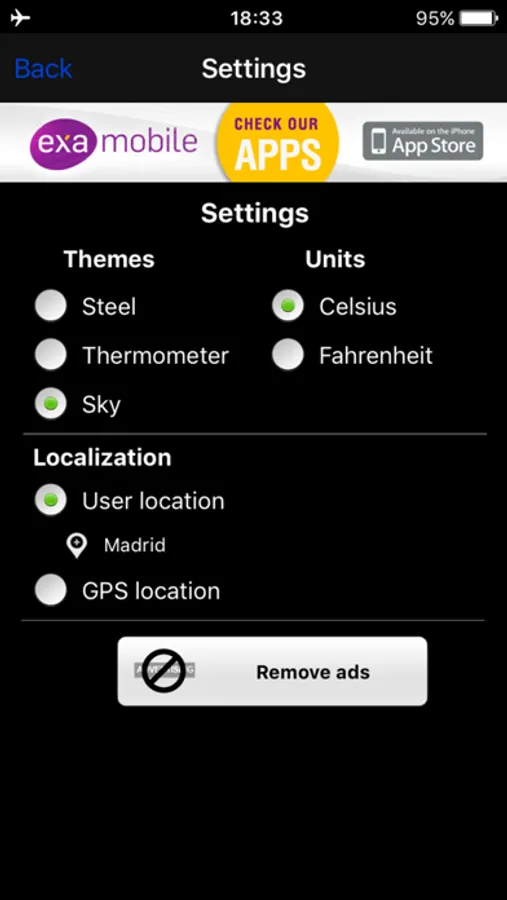 - The backgrounds are adjusting to the current temperature, blue background for low temperatures, red for hot temperature etc. (you have to choose the "Thermometer" theme)