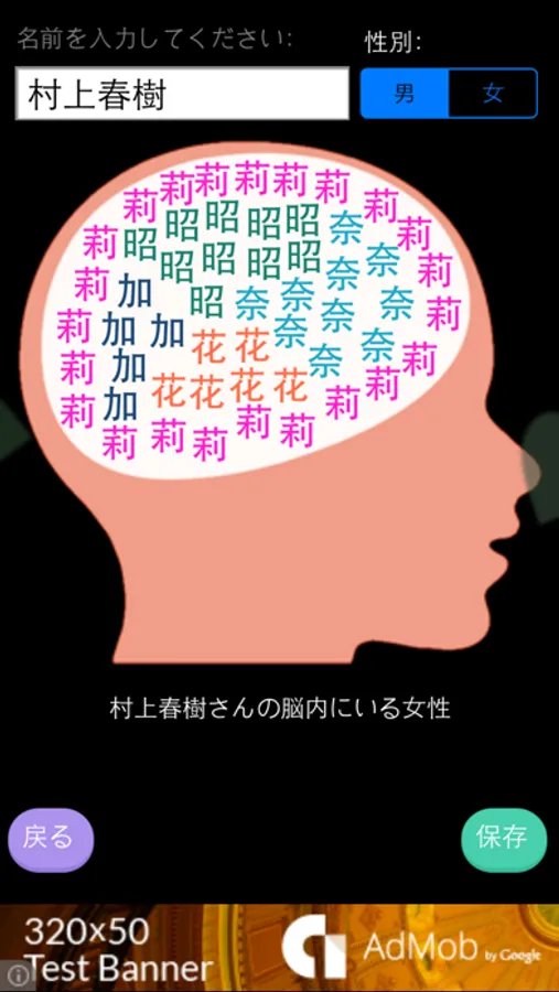 名前を入力すると分析結果が表示されます。 あなたや気になるあの人を分析!