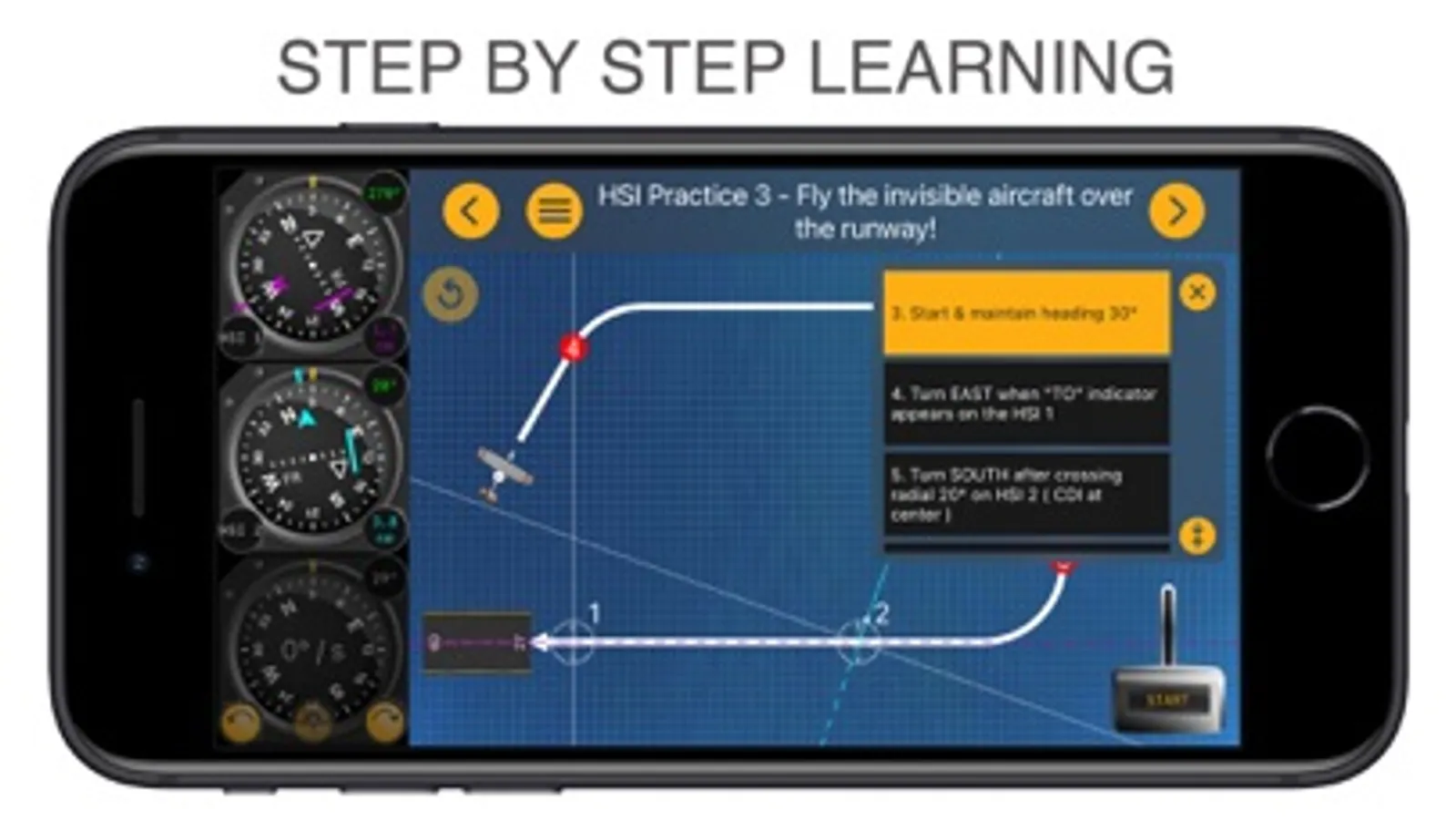 This new generation FlyGo training system brings you all IFR essentials in 1 App: procedure simulator, HSI, RMI, VOR-ILS avionics trainer, holding pattern secrets & more.