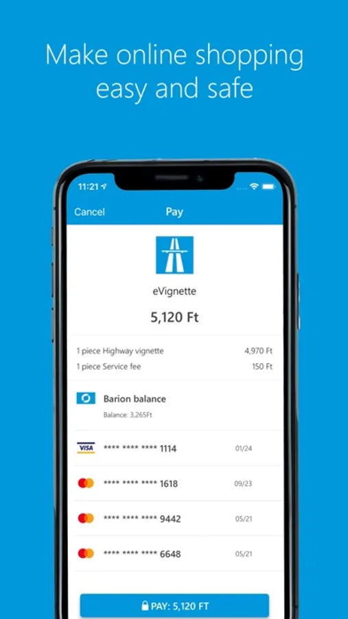 Forget about always typing in your card details when paying online. Save your bank cards easily and securely in your Barion account and just select the one you would like to pay with. You can pay in almost 10 000 webshops with your Barion account!