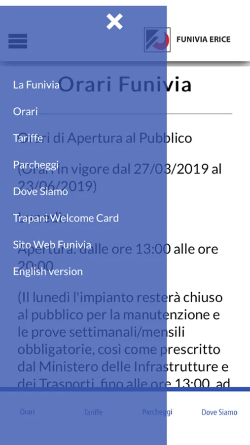 The lower station is located in Trapani at about 40 meters above sea level and has a rail to move vehicles in and out of the cable from an underground warehouse.