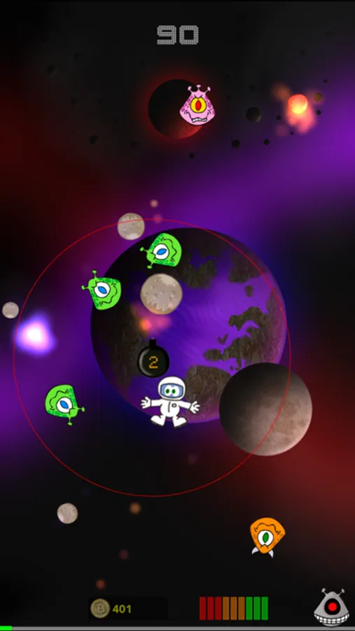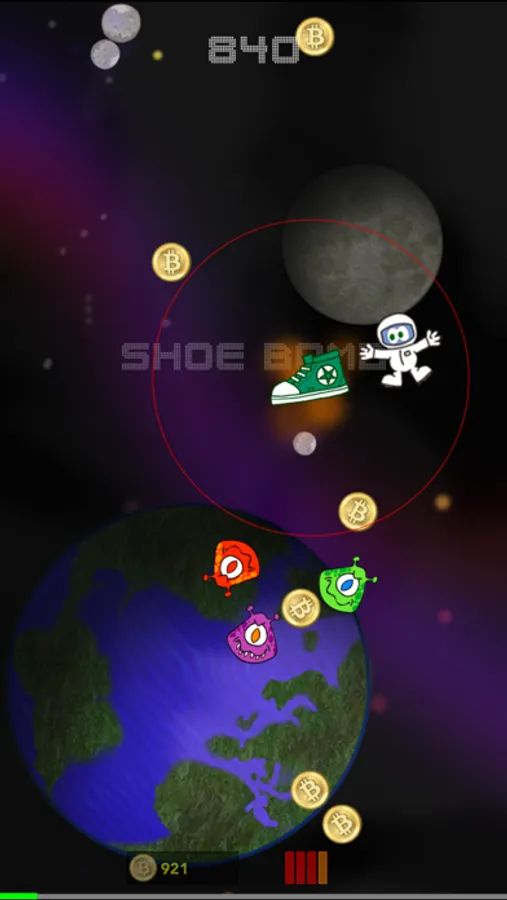 Collect gold coins to pay for bombs. Every time you kill 2 or more Aliens at once, coins will appear. The more Aliens you kill at once the more coins are released.