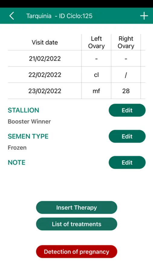 Create an oestrous cycle chart, upload every ultrasound check, treatments and therapies