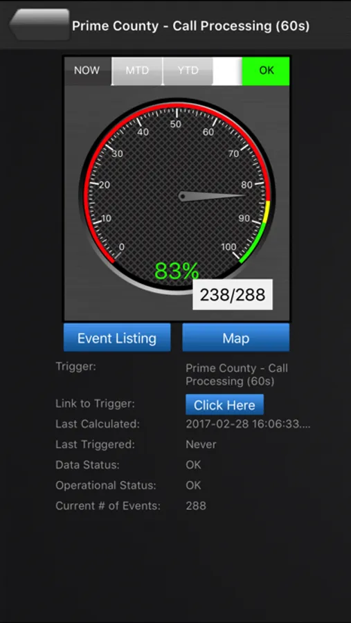 Gauge Drilldown – Drill into each individual gauge for a more in-depth trigger summary, including a link to view the full trigger via the FirstWatch system in your web browser.