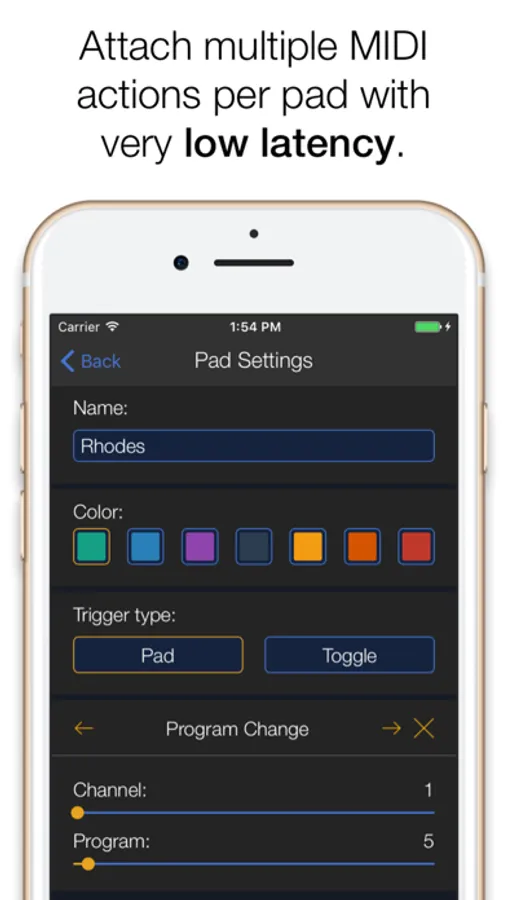 MidiPad is the most customizable Midi Pad Controller you will ever find! Using MidiPad you can send notes, program changes or controller events to Core Midi capable devices. The pads are velocity sensitive and you can add as many of them as you wish. Still not enough? Create multiple pages for each song or device. The possibilities are limitless!