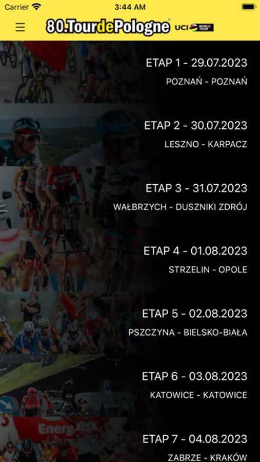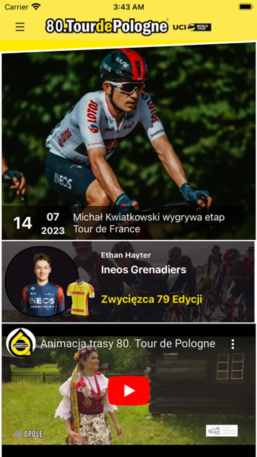 Downloading the app you get acess to unique video materials and live updates during the races. Stay up to date with Tour de Pologne!