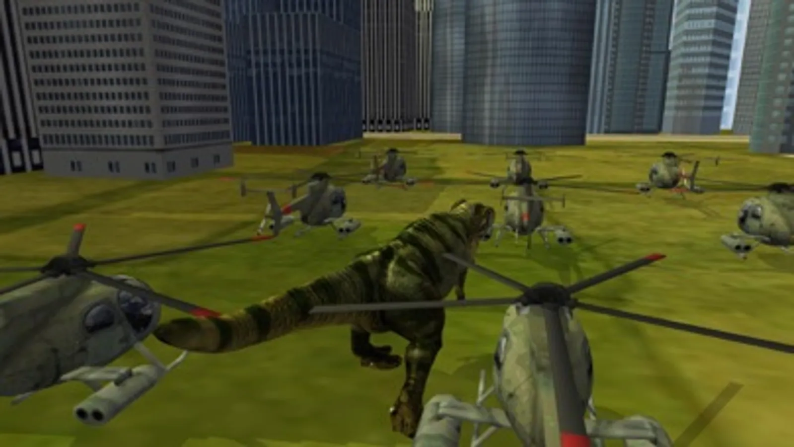 You are an angry Tyrannosaurus (T-Rex) dinosaur hellbent on creating as much dinosaur damage as possible. Become the hunter and smash the city to pieces.