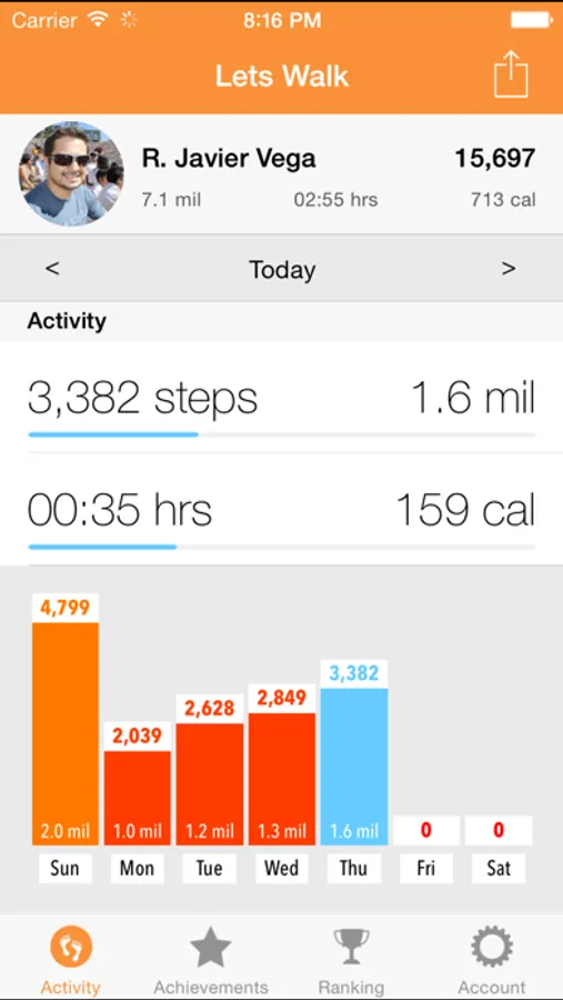 Use LetsWalk app to share your walking activity with your friends. You can compete with your friends in the weekly ranking increasing your daily walking activity.