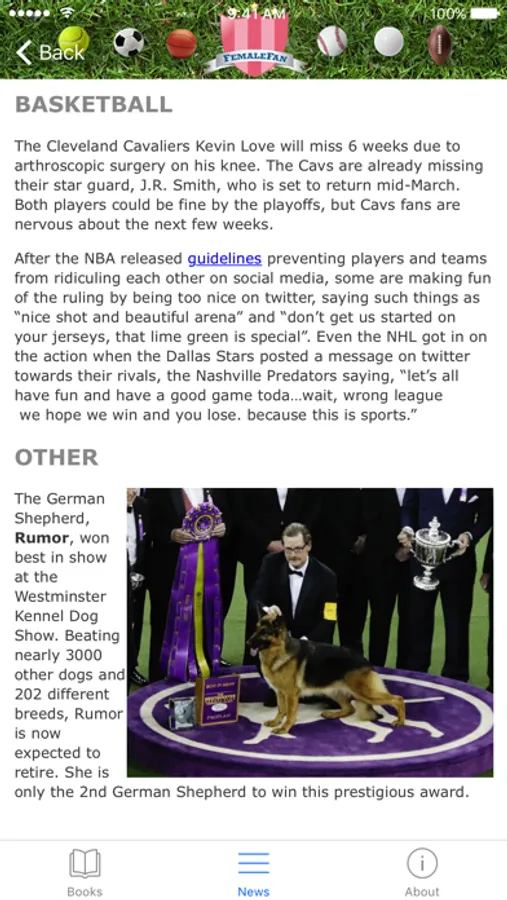 The femalefan.com site is now in an app on your iPhone. Betsy Bern's weekday sports posts are now delivered to you on the app, and if you like, via push notification. You have seen Betsy on the national TV networks and read her insights in the national press. Now have all that knowledge at your finger tips.
