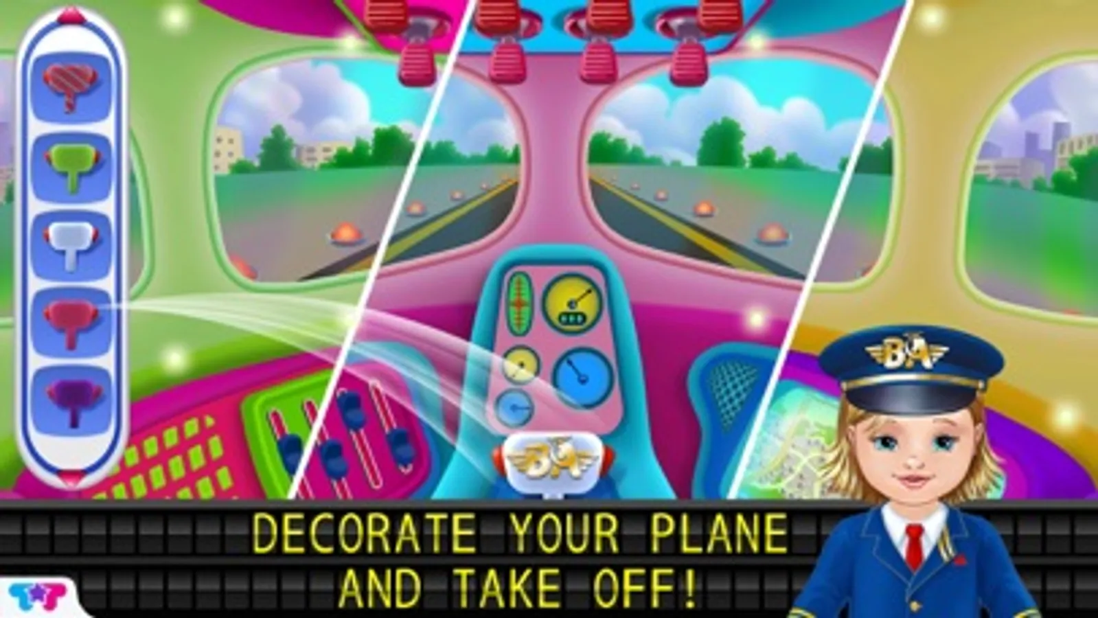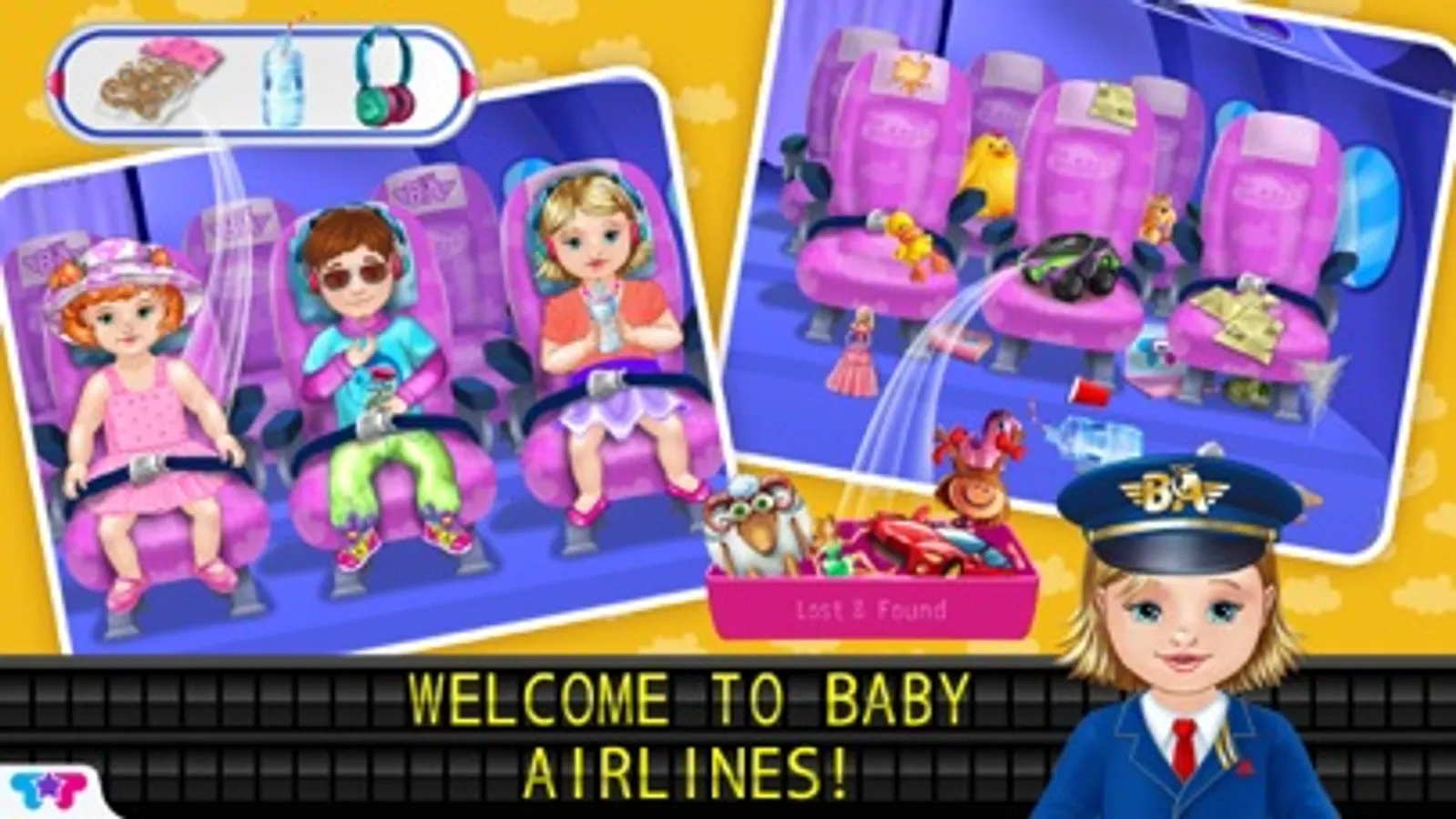 Get ready for a fun-filled airport adventure! The Baby Airlines crew needs YOUR help to run the airport smoothly. From check-in to security check to landing, it's up to you to make sure your passengers are safe and happy! Clean up the airplane and make sure your passengers are ready for their awesome flight! With tons of airplane activities, there’s so much fun to be had!
