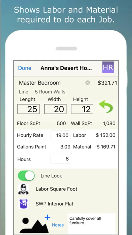 Painting Contractor Estimating & Billing Tool is a complete estimating, quotation and bid app for all types of painting & decorating contractors. It can also be used by homeowners to estimate the paint material needed for a project. Based on building and room dimensions the app automatically calculates the material required and calculates labor costs based on four different methods. Industry standard labor estimating methods are available including: flat rate, hourly or bids based on floor square footage or surface/wall area. An unlimited number of lines are available for each estimate are used for different area or labor tasks. Each line can store freeform notes or images. Completed estimates are viewed on the screen and may be either emailed or printed for your customer.