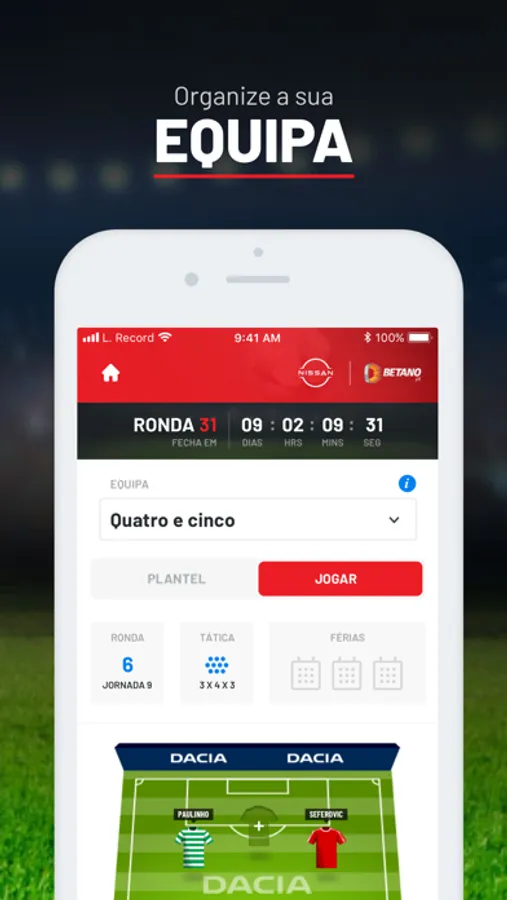 Em cada jornada escolhe a táctica, 11 titulares e 4 suplentes para entrar em campo.