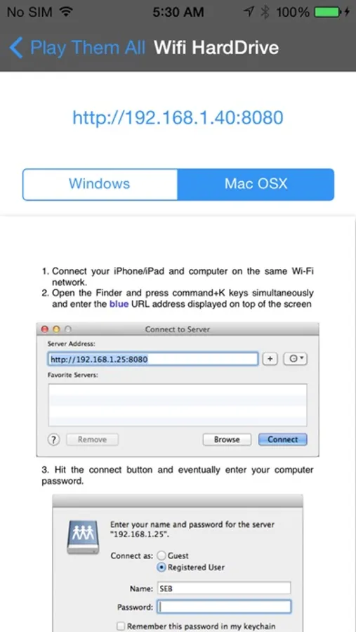 - Connect the app as a wifi hard drive on your computer, and easily transfer your videos and musics without any extra software, or iTunes.