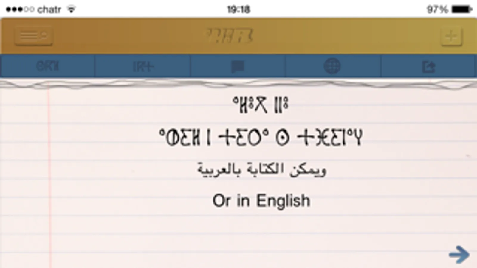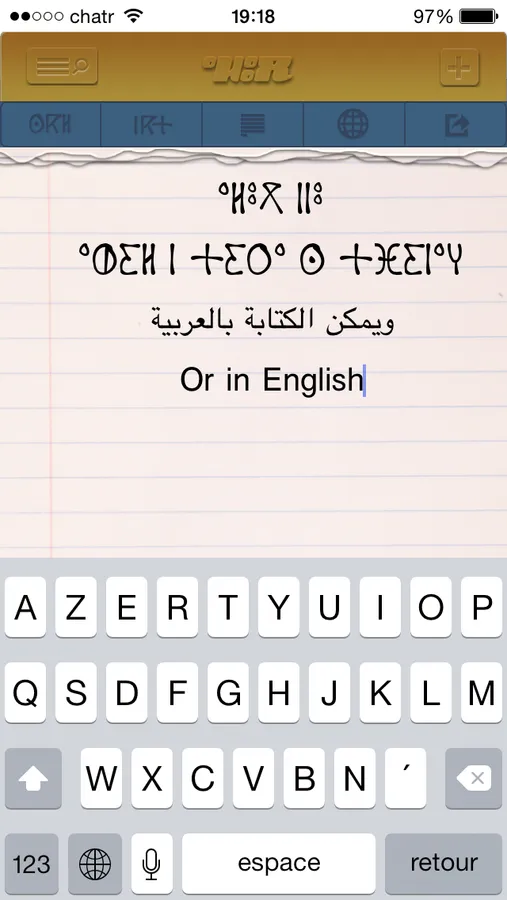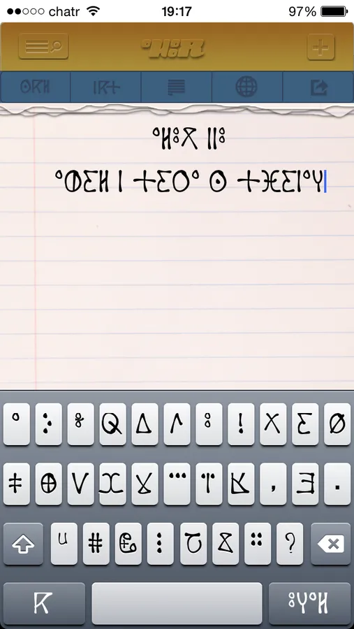 light weight application that allow you to write and save search in Tifinagh in your iPhone and iPad, This totally Amazigh application will allow you send and share your thoughts in Tifinagh.