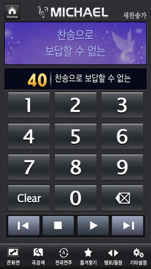 - 숫자버튼(0~9) 을 사용하여 찬송가를 선택하면 즉시 찾을 수 있습니다.