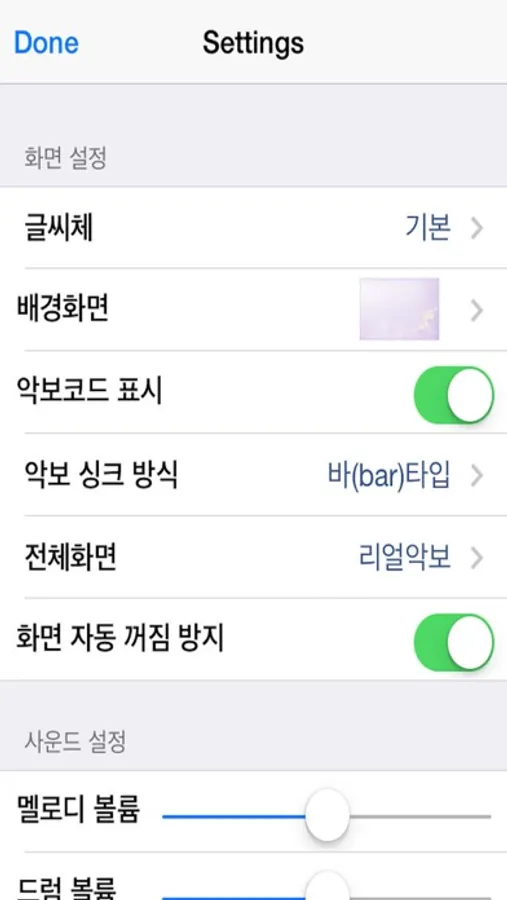 - 악보보기시 코드보기를 설정할 수 있습니다.