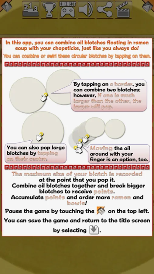 In this app, you can combine oil blotches floating in ramen soup with your chopsticks, just like you always do!