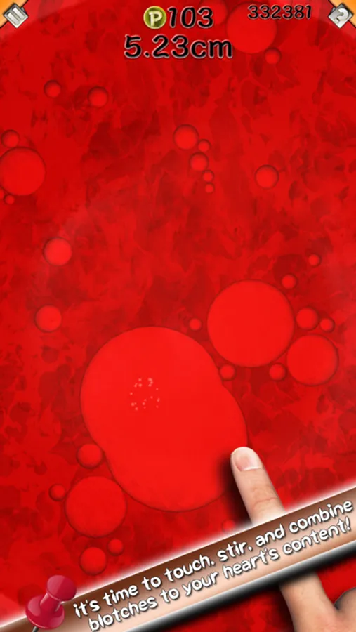 ・By tapping on a border, you can combine two blotches; however, if one is much larger than the other, the larger will pop.