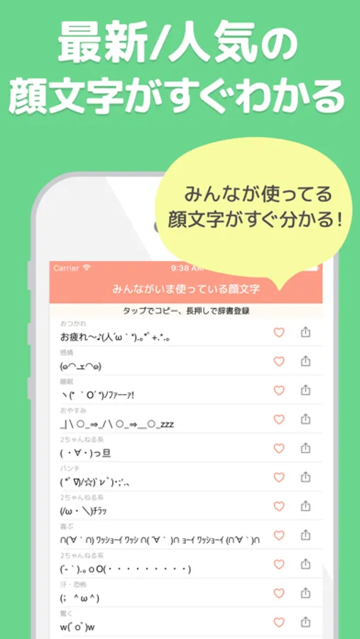 - 膨大な顔文字データベースをご用意。随時追加。