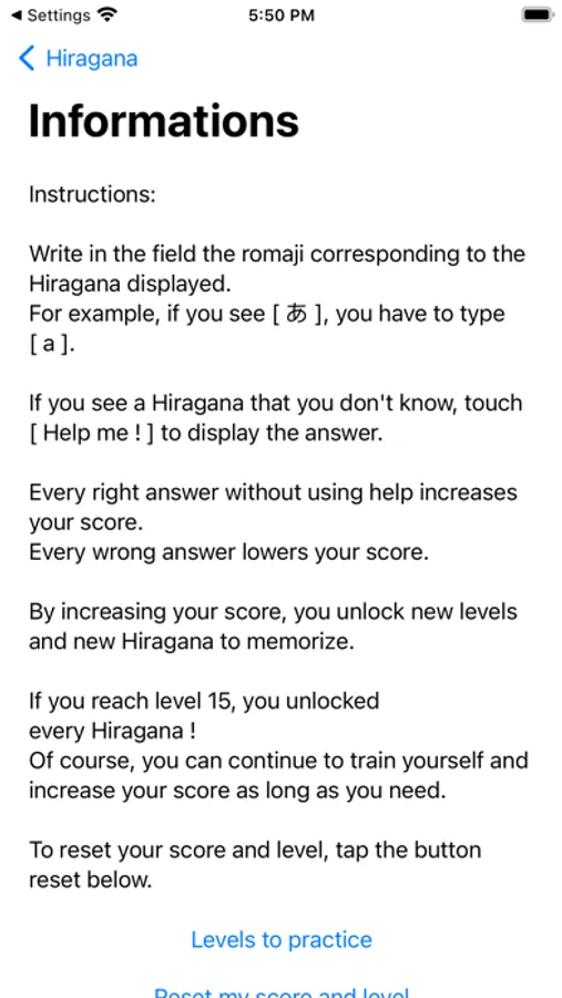 I created this application for myself when I started to learn Japanese. Proven effectiveness ! Give it a try if you want to learn and to memorize all Hiragana with a very simple, fast and efficient method in few hours.