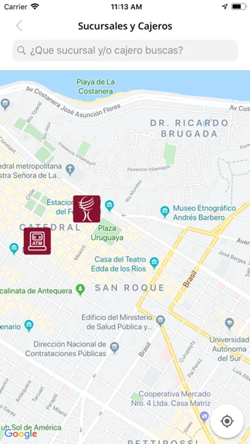 - Ubicación de sucursales y cajeros automáticos Atlas vía GPS.