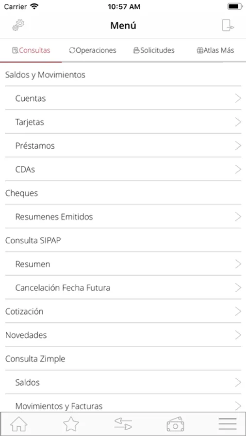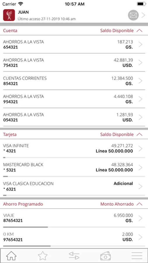 - Consulta de saldos y movimientos de cajas de ahorro, cuenta corriente, tarjeta de crédito, préstamo, entre otros.