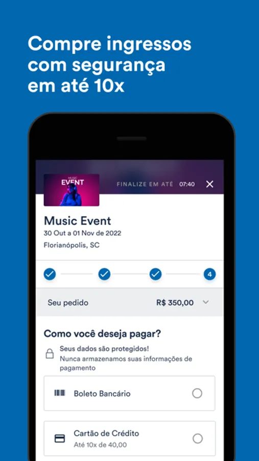 Garanta ingressos com segurança e tenha eles sempre a mão para entrar no evento, mesmo sem acesso a internet. Compre para seus amigos e compartilhe ingressos diretamente com eles.
